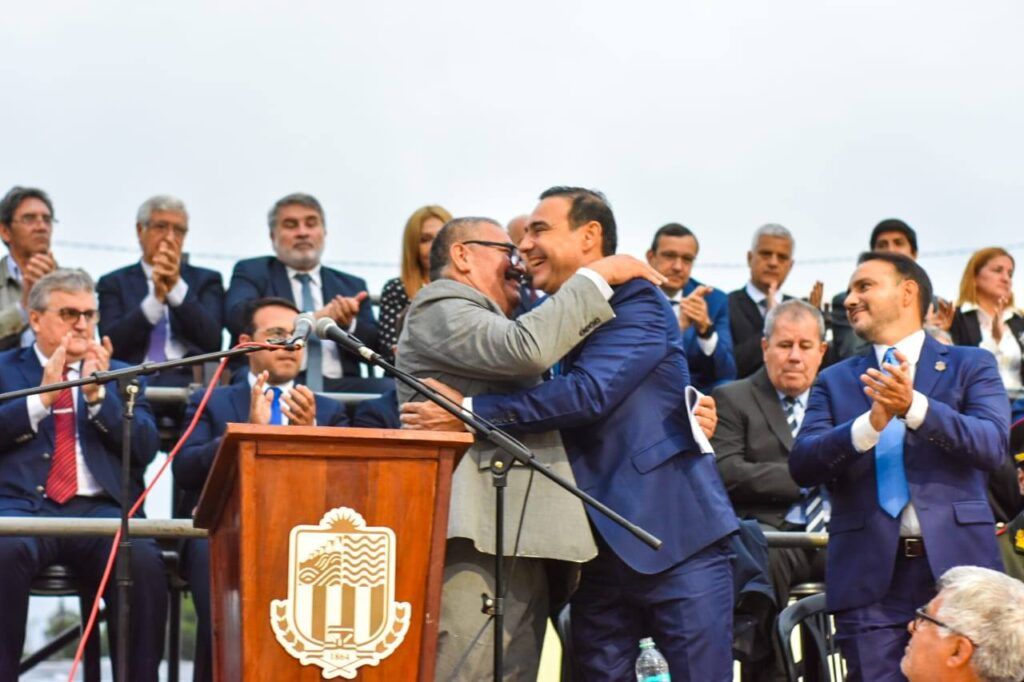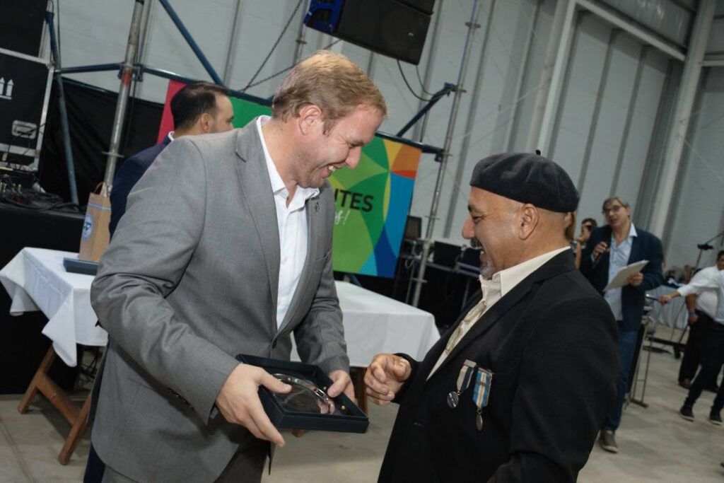 Al finalizar los discursos, el presidente del Centro de Excombatientes de Ituzaingó, entregó un presente al Gobernador.